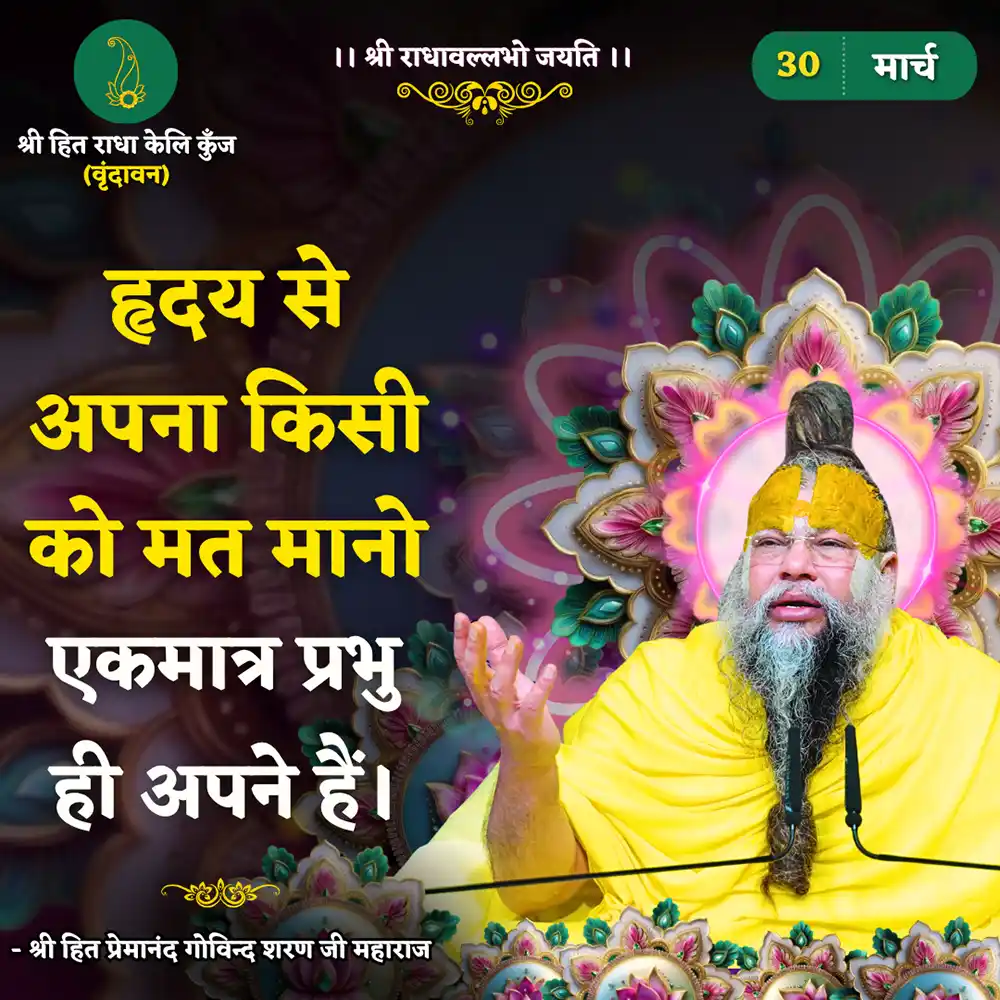 Pujya Shri Hit Premanand Govind Sharan Ji Maharaj is a revered Rasik Saint from Shri Dham Vrindavan, embodying the sacred bhav of Sahchari / Sakhi Prem revealed by Shri Hit Harivansh Mahaprabhu Ji.