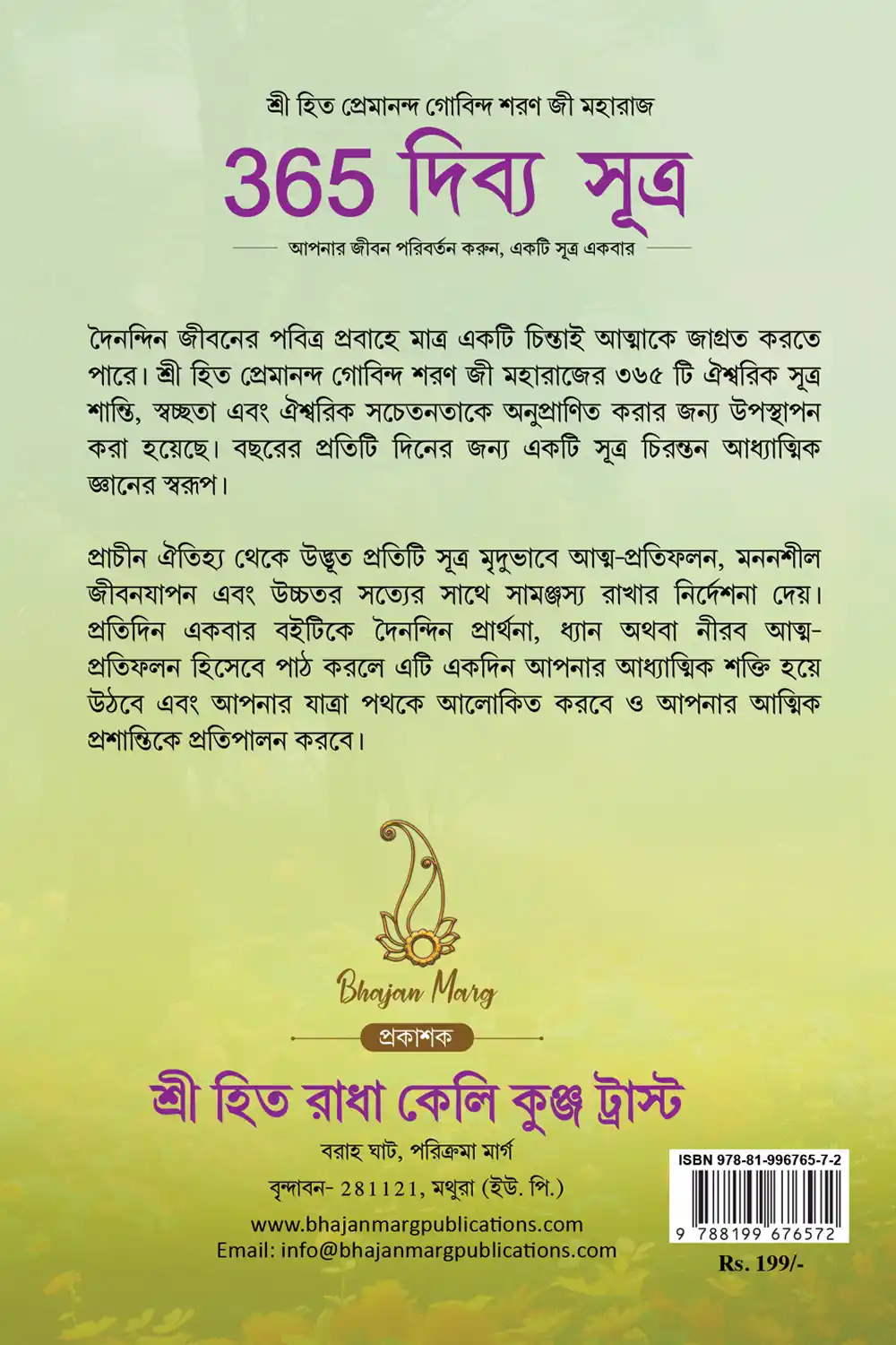 365 Divine Sutra is a spiritually enriching compilation of divine quotes spoken by Maharaj Ji, drawn from the eternal wisdom of Sanatan Dharma. Each sutra is concise yet profound, reflecting the essence of Vedas, Mahapuran, Ramayan, and Mahabharat—offered in a form suitable for daily contemplation. These sutras are not merely words, but living guidance—meant to awaken awareness, refine conduct, and deepen devotion in everyday life.