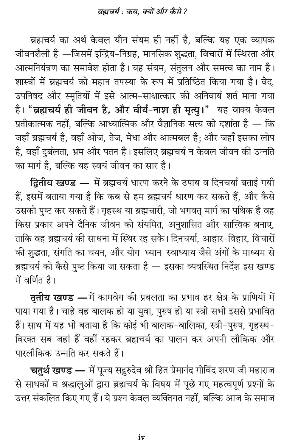 Through deep spiritual insights and practical guidance, Shri Hit Premanand Govind Sharan Ji Maharaj explains how the observance of celibacy awakens inner power, discipline, balance, purity, and divinity. This book is not just for monks or renunciates—it’s a manual for students, householders, and seekers of all ages (13–65) who wish to lead a life of clarity, strength, and higher consciousness.