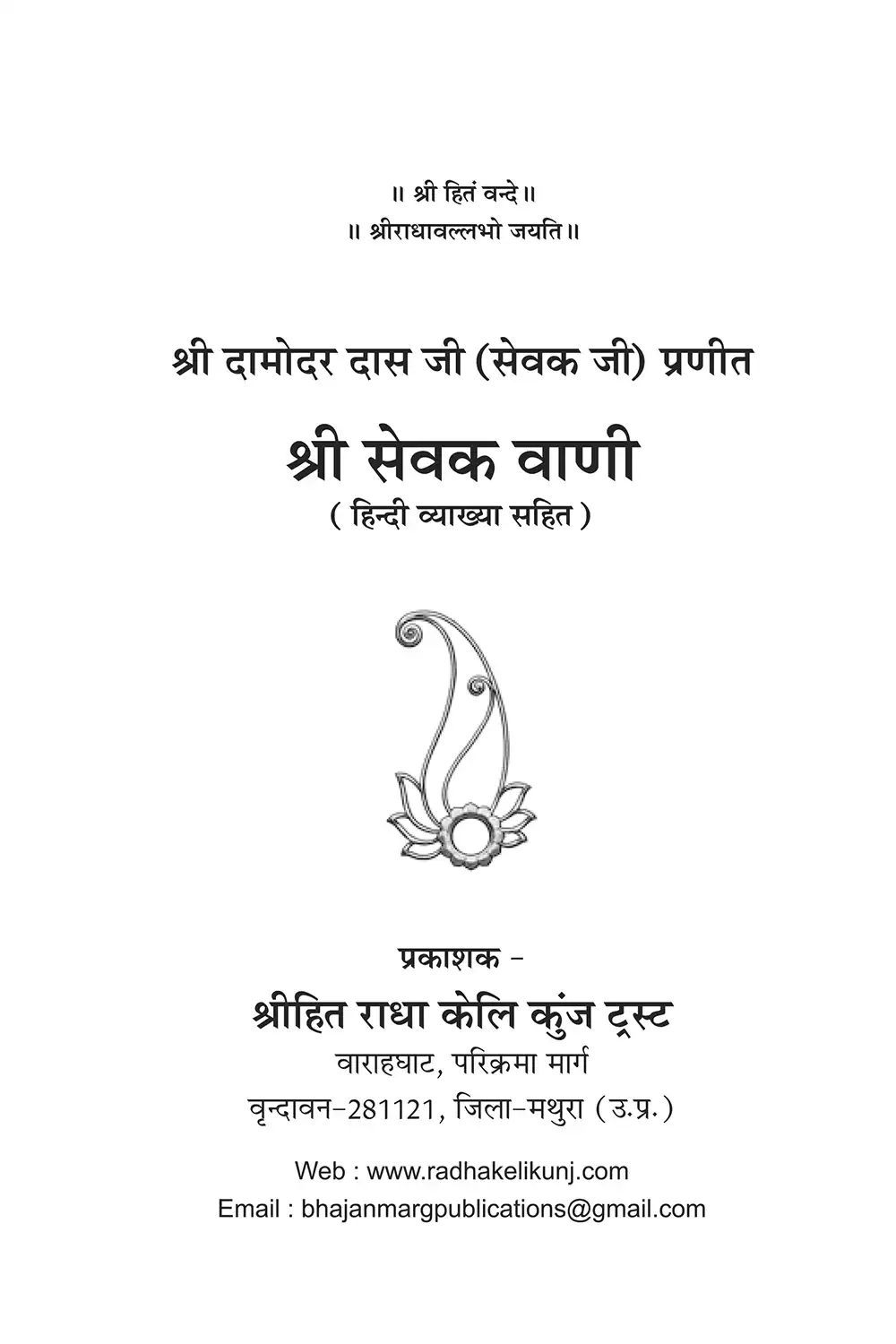 Shri Hit Sevak Vaani is not merely a book - it is a spiritual guide that leads the devotee inward, toward the eternal seva of Shri Radha Rani and the divine mysteries of Vrindavan.